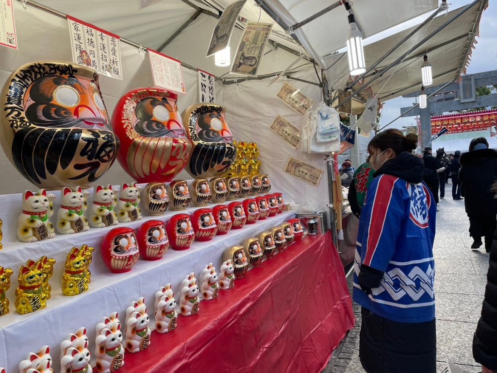 福引場所には大量の縁起物